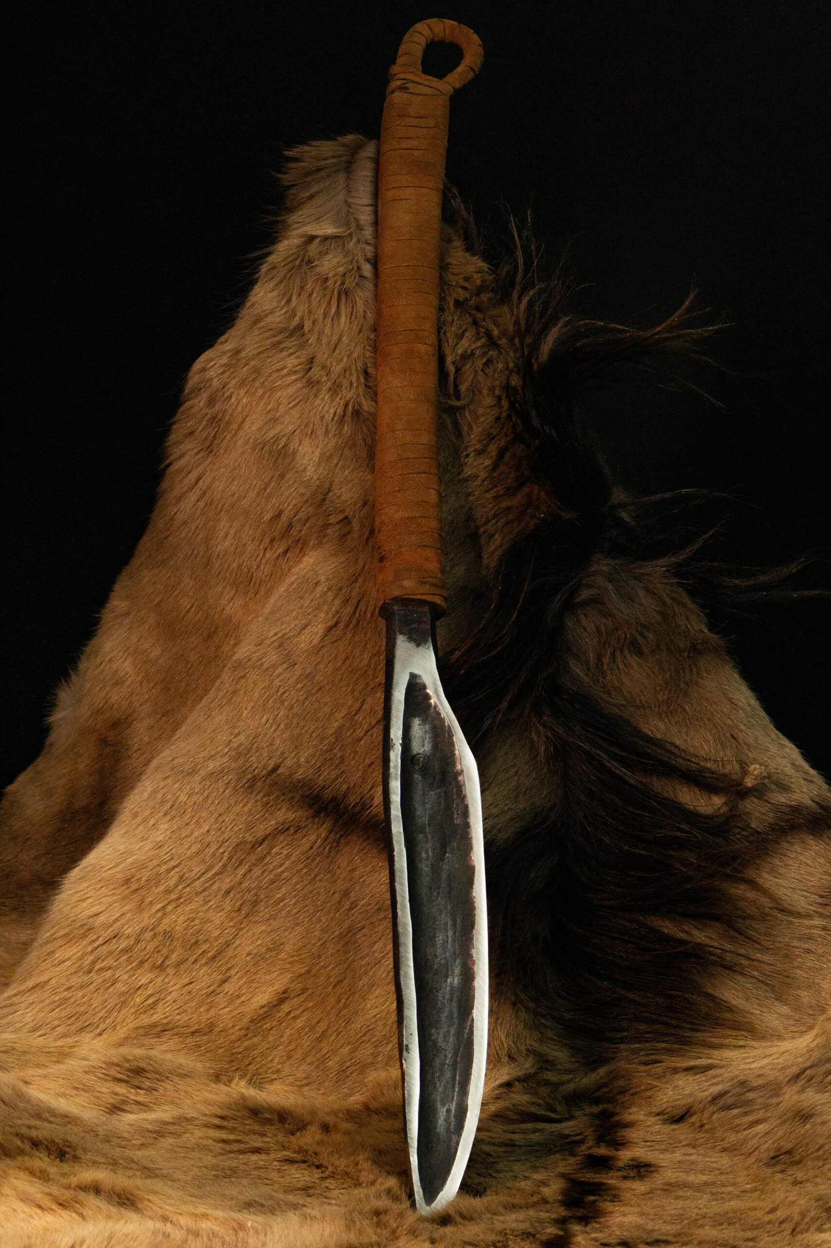 This Batyya pairs naturally with a handmade Yakut knife to form the complete traditional Sakha toolkit. Where the knife handles fine cutting, skinning, and food preparation, the Batyya tackles firewood, shelter-building, trail clearing, and heavy processing. Forged by a Yakut master using time-tested techniques, the Northern Guardian is built to endure decades of hard use — a functional heirloom for hunters, bushcraft practitioners, and collectors of authentic Northern tools.